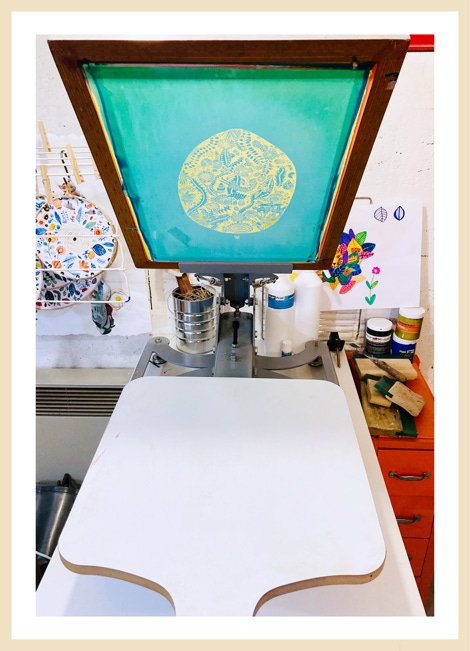 MAMA DOUCE a conçu et reproduit ce dessin organique par le procédé artisanal de la sérigraphie.
