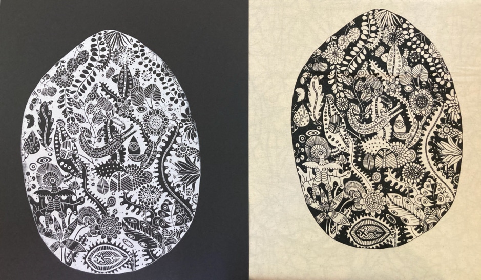 Depuis son atelier, elle a pris soin de mettre en place les outils nécessaires à la reproduction du dessin originel afin d'en délivrer les plus petits détails de ce monde plein de vie.