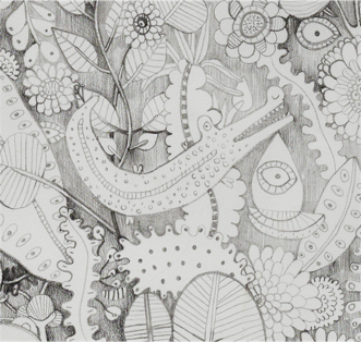 Depuis son atelier, elle a pris soin de mettre en place les outils nécessaires à la reproduction du dessin originel afin d'en délivrer les plus petits détails de ce monde plein de vie.
